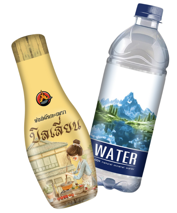 ผลิตภัณฑ์ที่บรรจุขวดนิยมใช้ฉลากฟิล์มหดหุ้มเพื่อบ่งบอกถึงแบรนด์ของสินค้า โดยส่วนใหญ่ จะเป็นประเภท ฉลากน้ำดื่ม ฉลากน้ำปลาร้า ฉลากน้ำผลไม้ ฉลากขวดน้ำ ฉลากขวดน้ำจิ้ม ฉลากน้ำจิ้ม